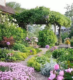 別墅花園道路鋪裝,選材應以天然的石材、原木為主, 例如青石板, 黃麻石、砂礫、鵝卵石等原始樸實的材料, 用天然材料表現出粗線條的質樸,更凸顯花園的味道。