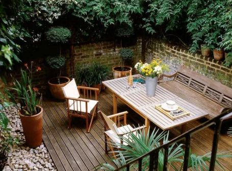 無論是獨棟別墅的庭院還是郊區(qū)小院、屋頂?shù)穆杜_,私密性是私家花園的重點。如果院子空間有限,而又和鄰居靠在一起,可以利用護欄、高大的樹木、灌木,或制作灌木籬笆,建木柵欄或者直接砌一堵墻等方式來遮擋。