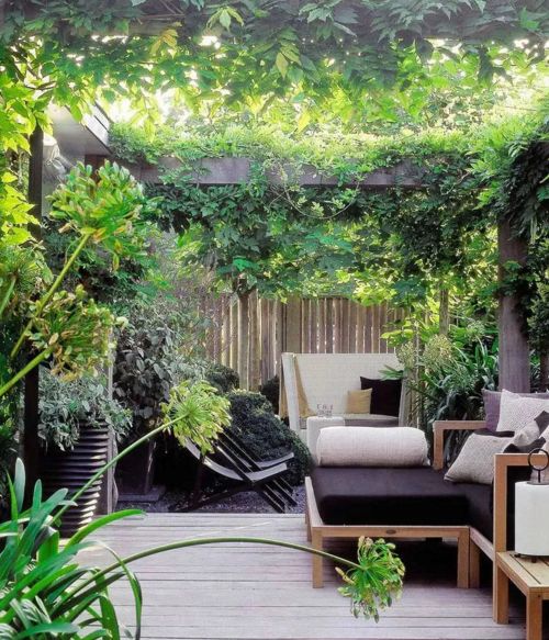 如果你想營造一個完全封閉的庭院,在設(shè)置高大護欄的同時,就需要增加栽種各種高度的植物,最好不少于三種層次的高度搭配。學(xué)會借用公共區(qū)域的高大喬木,那些已經(jīng)成形的大而密的樹冠說不定可以為你院子的一部分遮蔭。