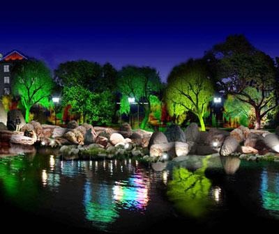 對于噴泉,瀑布可利用水下照明,將相同或不同顏色的水下燈,按一定圖案排列向上照射,效果神奇,別有情趣。