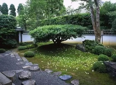 日式別墅庭院獨(dú)具悲涼氣氛和禪宗意境,因此樹木的整體色調(diào)淡雅,避免使用會(huì)開出大片艷麗花卉的樹木,也不會(huì)出現(xiàn)過多色相的色彩。