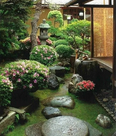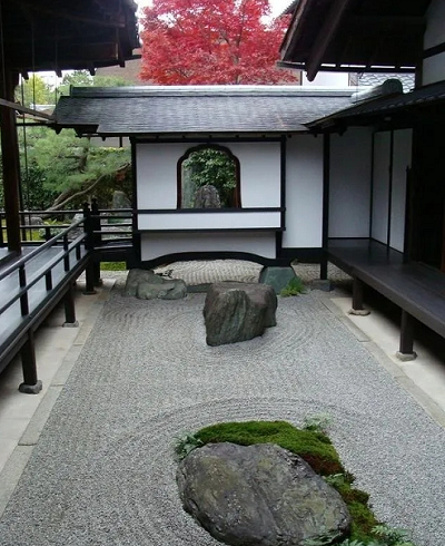日式別墅庭院中,日式庭院經(jīng)??梢钥吹剿槭?、殘木、青苔,也喜歡在庭院中設計溫泉湯池,日式庭院中“枯山水”、石組、竹籬笆,這些都是傳統(tǒng)的日式園林景觀元素,會通過種植植物等方式增加庭院的私密性,并注重整體風格的寧靜和簡約。
