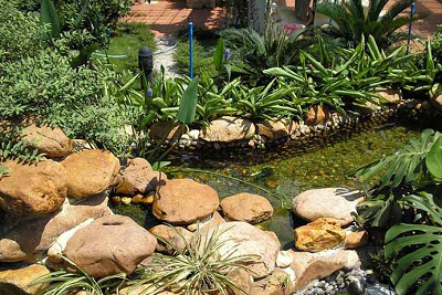 生態(tài)水池是適于水下動植物生長,又能美化環(huán)境、調(diào)節(jié)小氣候供人觀賞的水景。在居住區(qū)里的生態(tài)水池多飼養(yǎng)觀賞魚蟲和習水性植物(如魚草、蘆葦、荷花、蓮花等),營造動物和植物互生互養(yǎng)的生態(tài)環(huán)境。水池的深度應(yīng)根據(jù)飼養(yǎng)魚的種類、數(shù)量和水草在水下生存的深度而確定。一般在0.3-1.5m,為了防止陸上動物的侵擾,池邊平面與水面需保證有0:15m的高差。水池壁與池底需平整以免傷魚。池壁與池底以深色為佳。不足0.3m的淺水池,池底可做藝術(shù)處理,顯示水的清澈透明。池底與池畔宜設(shè)隔水層,池底隔水層上覆蓋0.3-0.5m厚土,種植水草。