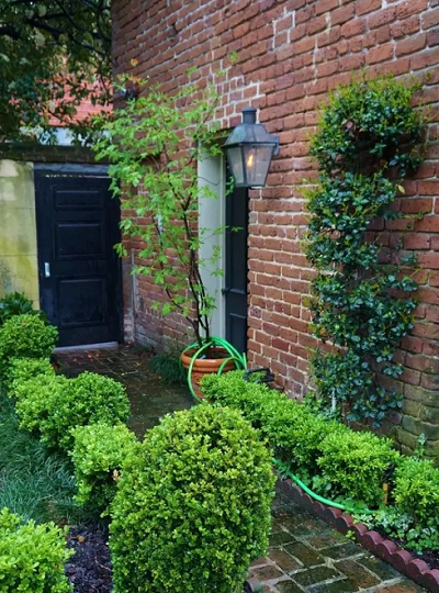 同理,諸如成對的花盆、水缸、花園庭院雕塑、家具甚至是樹形相同的黃楊木、紫杉或者其他灌木,在合理安排后,也能起到相同的效果。
