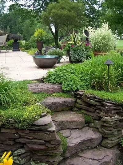 解決人們走路的辛苦,也可讓人們坐下來靜賞眼前的美景。群臵時,后面的石頭須大于并高于前面的石頭。