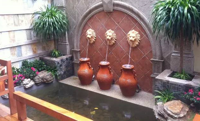 常見的噴泉在私家花園里經(jīng)常會(huì)和雕塑、小品、花壇、盆景結(jié)合一起;為我們所熟悉。壁泉是從壁面上流下來的泉水。它是園林中室內(nèi)外滲透手法之一,其構(gòu)造分壁面、落水口與受水池三部分。壁泉的落水形式可以依水量而定;可做成片狀落(水簾),柱狀落和淋落(滴泉落)。