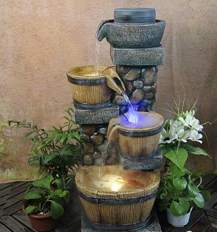 庭院裝飾水景不附帶其他功能,起到賞心悅目,烘托環(huán)境的作用,這種水景往往構(gòu)成環(huán)境景觀的中心。裝飾水景是通過(guò)人工對(duì)水流的控制(如排列、疏密、粗細(xì)、高低、大小、時(shí)間差等)達(dá)到藝術(shù)效果,并借助音樂(lè)和燈光的變化產(chǎn)生視覺(jué)上的沖擊,進(jìn)一步展示水體的活力和動(dòng)態(tài)美,滿足人的親水要求。
