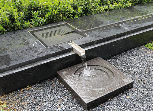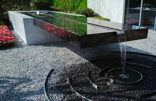 這種就相對(duì)簡單許多,黑山石的流水小景,特別適合小型庭院及空間的點(diǎn)綴,給相對(duì)平靜的空間增加些許動(dòng)力。