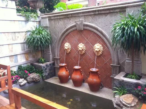 常見的噴泉在私家花園里經(jīng)常會和雕塑、小品、花壇、盆景結(jié)合一起;為我們所熟悉。壁泉是從壁面上流下來的泉水。它是園林中室內(nèi)外滲透手法之一,其構(gòu)造分壁面、落水口與受水池三部分。壁泉的落水形式可以依水量而定;可做成片狀落(水簾),柱狀落和淋落(滴泉落)。