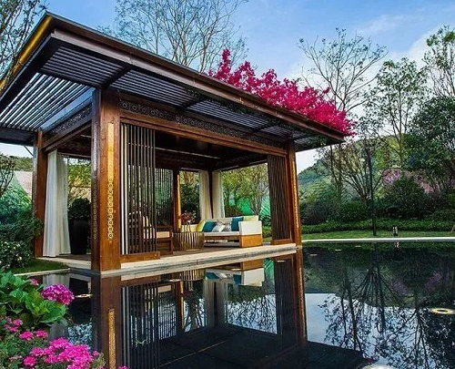 新中式是傳統(tǒng)中國文化與現(xiàn)代時(shí)尚元素在時(shí)間長河里的邂逅,以內(nèi)斂沉穩(wěn)的傳統(tǒng)文化為出發(fā)點(diǎn),融入現(xiàn)代設(shè)計(jì)語言,為現(xiàn)代空間注入凝練唯美的中國古典情韻。新中式景觀亭是中式亭的延伸,設(shè)計(jì)上注重中式元素的傳承,注意跟周圍景觀的結(jié)合,營造詩情畫意的美,但同時(shí)更加簡潔,實(shí)用性、功能性更強(qiáng)。