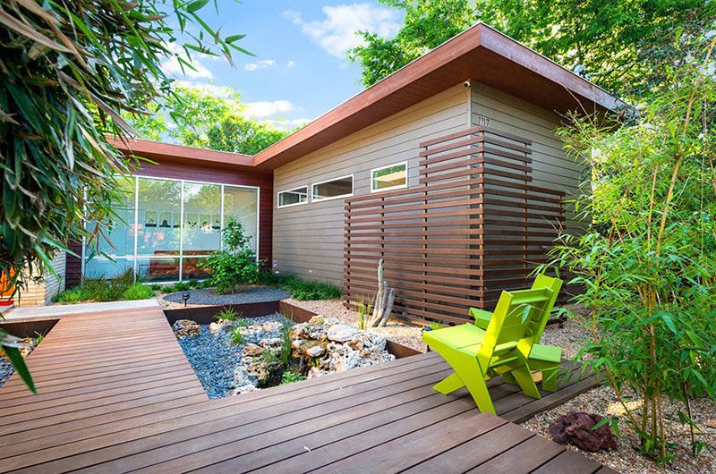 庭院設(shè)計所采用的新中式風(fēng)格是把中國的傳統(tǒng)元素加入到現(xiàn)代時尚風(fēng)格中的一種藝術(shù)形式,以沉穩(wěn)內(nèi)斂為出發(fā)點(diǎn),融入現(xiàn)代元素,打造富有傳統(tǒng)韻味的別致景觀,體現(xiàn)出傳統(tǒng)的藝術(shù)魅力。在這種形式下,既能保留傳統(tǒng)文化,又能凸顯時代特色,使用傳統(tǒng)手法,借助中國傳統(tǒng)的韻味色彩、圖案符號及植物景觀,打造現(xiàn)代新式風(fēng)格園林。