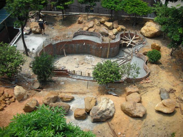 3. 建造魚池:挖好魚池土建部分,先建造魚池底部,用鋼筋結(jié)成網(wǎng),布好排水和進(jìn)水管,接好電源等,然后用混凝土灌裝,等池底結(jié)構(gòu)堅(jiān)固,依形狀裝模,再對主池池壁進(jìn)行灌漿,過兩天可以自行拆除模板,主池結(jié)構(gòu)完成。
