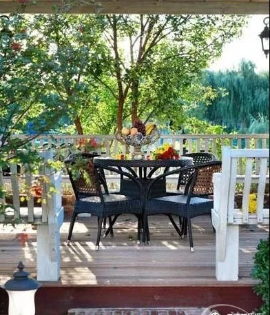 這款別墅花園花園里的休閑亭采用了防腐蝕木料作為建造主題,并采用了純木質(zhì)結(jié)構(gòu)。在亭子中擺放著各式戶外家具,它們不僅防雨淋、防風(fēng)吹日曬,清潔起來也非常方便。在主人邀請客人到家中聚餐時,這里是最好的戶外休閑場所。周圍漂亮的風(fēng)景可謂是讓人陶醉了!