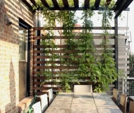 別墅院子可以設(shè)計成如圖的休閑區(qū),頂面做一排木質(zhì)柵欄,四周剩余的空間栽花種草,布置一個貼近自然敞亮大氣的休閑區(qū)。閑暇之余,約上三五幾個好友,一起坐在院子里喝喝茶、聊聊天,好不愜意的生活。當(dāng)然,這樣的院子需要注意的就是防水和排水問題,做好基礎(chǔ)設(shè)計,實用性倍增。