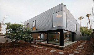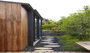 4.這個(gè)獨(dú)立住宅的后院利用暖色調(diào)石頭建造步行道。