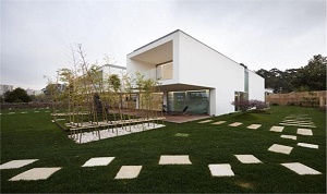 3.房屋的庭院分散放置著一些踏腳石,建造出道路,供人們蹦蹦跳跳的玩耍。