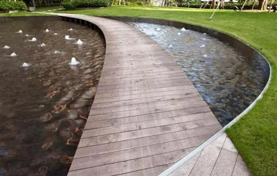 水景作為設計中常用元素,必然避免不了與水體的處理,簡單的兩側鏡面水,同時加一些動態(tài)水景如泡泡泉,效果都不錯,也可以處理成小型水系。