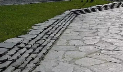 常見的使用黑白卵石、礫石甚至片石,過度園路邊界或者對排水溝起美化過度作用。
