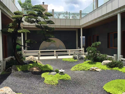 日式別墅庭院中,日式庭院經(jīng)??梢钥吹剿槭?、殘木、青苔,也喜歡在庭院中設計溫泉湯池,日式庭院中“枯山水”、石組、竹籬笆,這些都是傳統(tǒng)的日式園林景觀元素,會通過種植植物等方式增加庭院的私密性,并注重整體風格的寧靜和簡約。